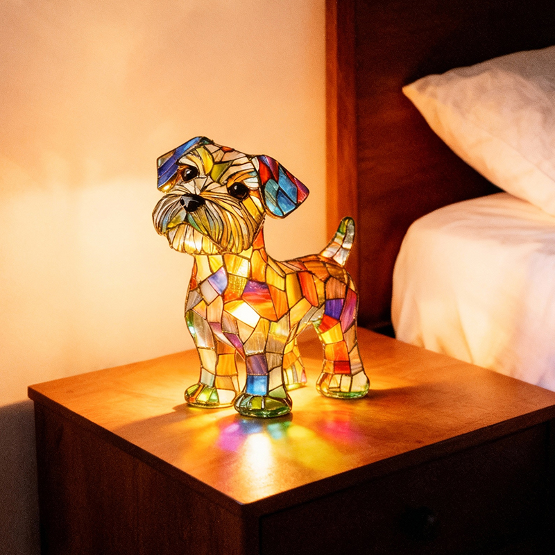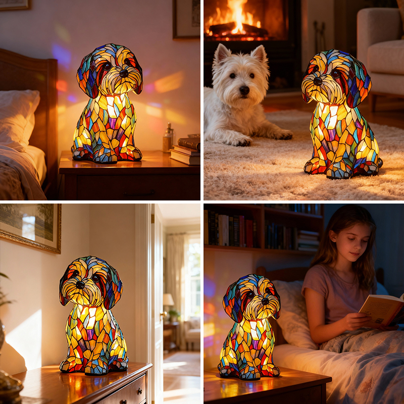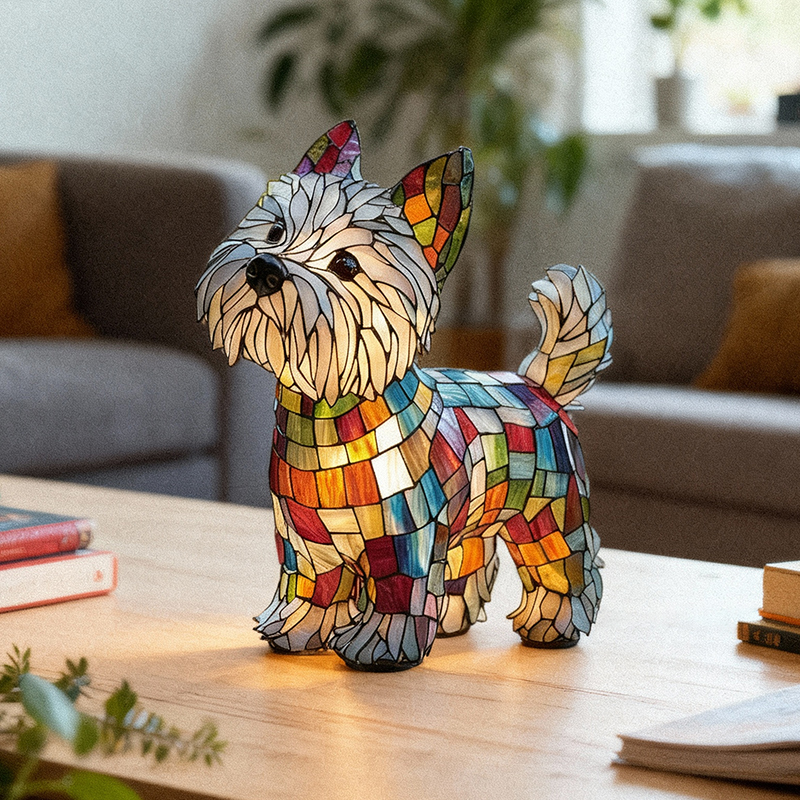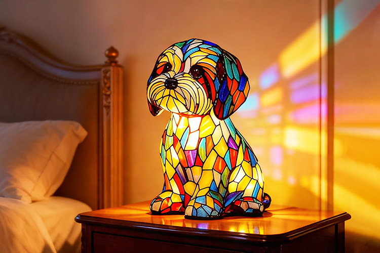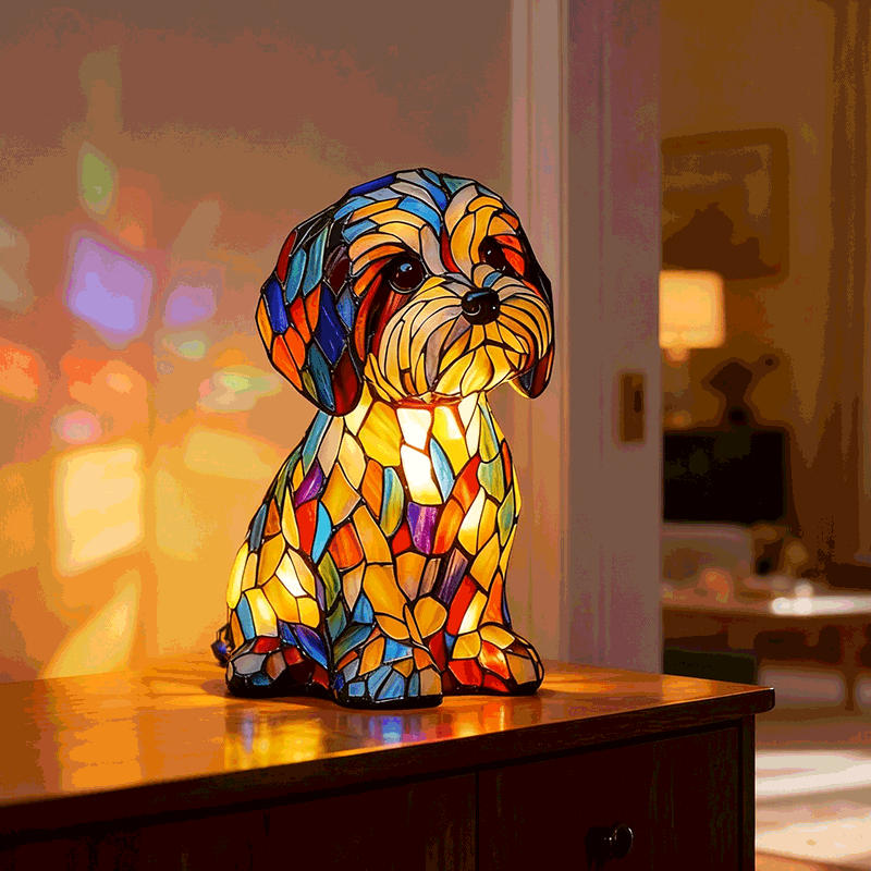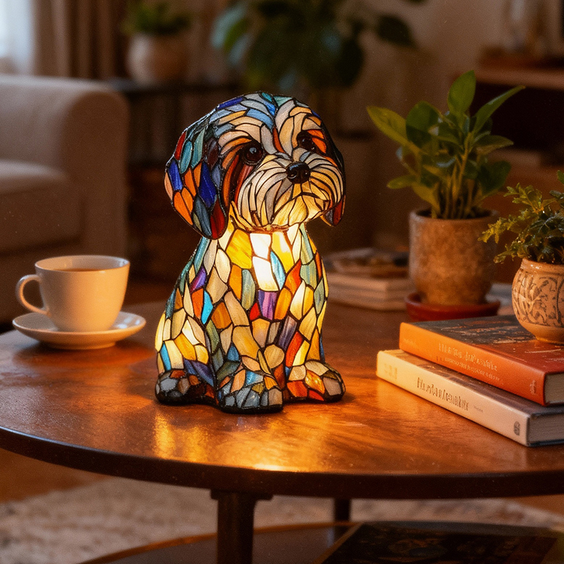 Djärva, livfulla färger flödar naturligt över valpens form och skapar ett skulpturartat utseende som känns mer som konst än som dekoration. Även när lampan är släckt fångar den ljuset, drar blicken till sig och lyfter omedelbart rummet.